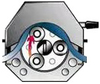 在滾珠之間形成一個流體“枕”其形狀大小與泵管內徑及轉子的幾何形狀有關。流速則取決于該枕形流體的速度與尺寸大小的乘積。此枕形可保持基本不變,除非流體粘度太大。